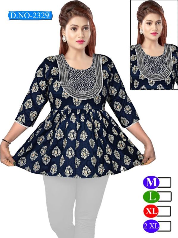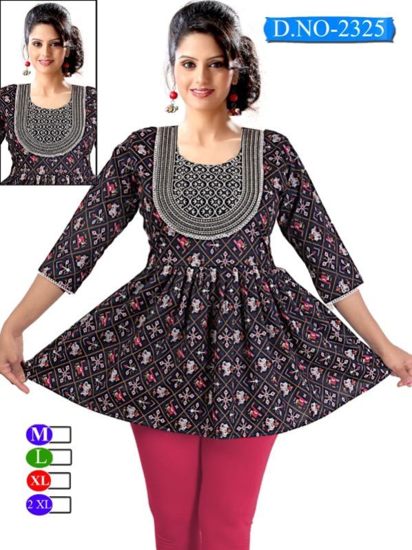 1 Products availableWe offer the best product range of Cotton Ladies Short Frock Style Short Kurti, Ladies Cotton Blend Straight Short Kurti, Ladies Rayon Short Kurti, Ladies Rayon 3/4th Sleeve Short Kurti and Ladies Cotton 3/4th Sleeve Printed Frock Short Kurti.
