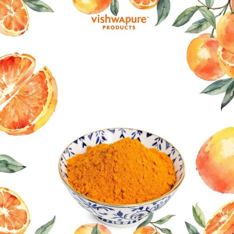 Vishwapure Orange Peel Powder is a natural, nutrient-rich ingredient crafted from carefully dried and finely ground orange peels. Packed with vitamin C, antioxidants, and essential bioflavonoids, it serves as an excellent addition to skincare, hair care, and wellness applications. Its natural cleansing and brightening properties make it a preferred choice for cosmetic formulations, face masks, scrubs, and herbal remedies.