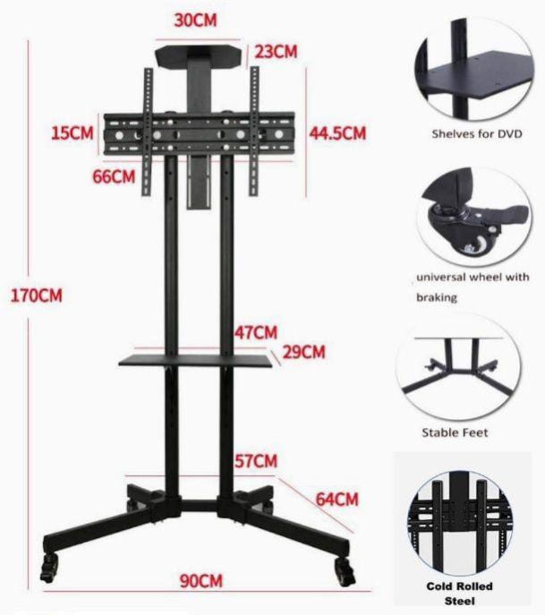 Tv Trolley, TV Cart, Mobile Tv Cart for 32 inch to 75 inch display or tv.