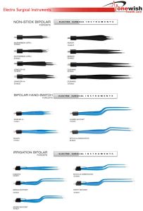 ONE WISH HEALTH CARE LAUNCH NEW ELECTROSURGICAL INSTRUMENTS LIST OF ELECTROSURGICAL INSTRUMENTS FOLLOWING PRODUCTS AVAILABLE AS PER DEMANDS 1. BIPOLAR FORCEPS 2. MONOPOLAR FORCEPS 3. NON STICK BIPOLAR FORCEPS 4. BIPOLAR HAND SWITCH FORCEPS 5. IRRIGATION BIPOLAR FORCEPS 6. MONOPOLAR HAND SWITCH FORCEPS 7. EUROPEAN BIPOLAR FORCEPS 8. EUROPEAN NON STICK BIPOLAR FORCEPS 9. EUROPEAN IRRIGATION BIPOLAR FORCEPS 10. DISPOSABLE BIPOLAR FORCEPS 11. DIATHERMY INSTRUMENTS 12. BIPOLAR ARTERY SEALER 13. BIPOLAR ELECTRODES 14. BIPOLAR ELECTRODES (SINGLE USE) 15. BIPOLAR CABLE 16. MONOPOLAR CABLE 17. ELECTROSURGICAL PENCIL 18. ELECTRODES (2.4mm) 19. LOOP ELECTRODES (2.4mm) 20. ELECTRODES (4.0mm) 21. LOOP ELECTRODES (4.0mm) 22. PATIENT RETURN PLATE 23. PATIENT RETURN PLATE (SILICONE) 24. LAPAROSCOPIC ELECTRODES 25. ARTHROSCOPIC ELECTRODES 26. ELECTROSURGICAL INSTRUMENTS FOR GYNECOLOGY 27. LASER SURGERY INSTRUMENTS OR GYNECOLOGY