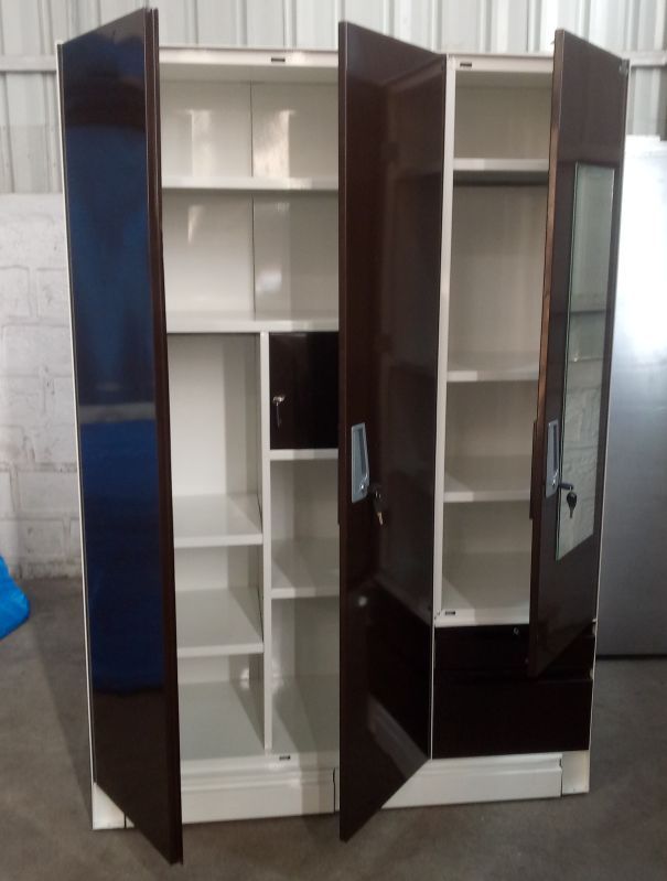 All CRC MS powder coated Heavy duty with adjustable selfs with Centralize Lock and with optional safe system, attached mirror, drawer