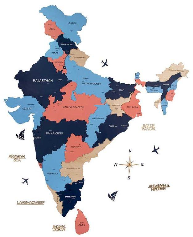 We create a high-quality 3D colored wooden India map with laser-cut precision.