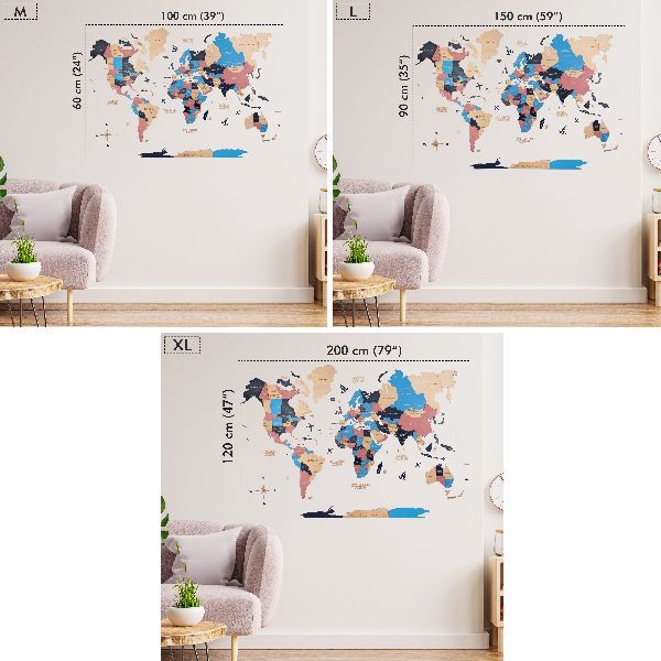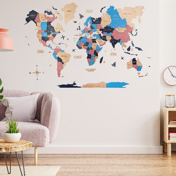 Find the ideal 3D colored wooden world map size for that special spot in your home. We have
