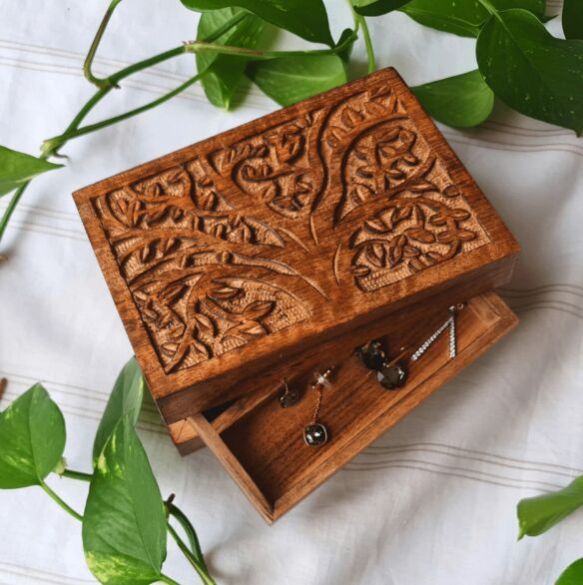 Worldly Craft offers elegantly handcrafted Wooden-Jewellry-Box, designed with intricate bone inlay patterns that bring a warm and sophisticated charm to any space. These holders are perfect for creating a cozy ambiance or enhancing home décor with their timeless beauty. Ideal for bulk and wholesale orders, they cater to buyers seeking unique, eco-friendly decorative accessories. We welcome export inquiries and provide samples to ensure complete satisfaction with the quality and design before placing larger orders.