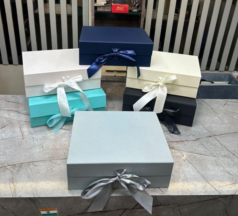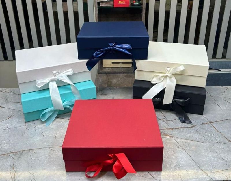 We offer exquisite Rectangular Luxury Gift Boxes crafted from luxury cardboard in a variety of multi-color options. These elegant boxes feature a lid closure, making them perfect for gift packaging. The sleek rectangular shape adds a touch of sophistication to any gift. Ideal for suppliers and traders looking to elevate their product presentation. Impress your customers with these high-quality gift boxes that are both visually appealing and durable.