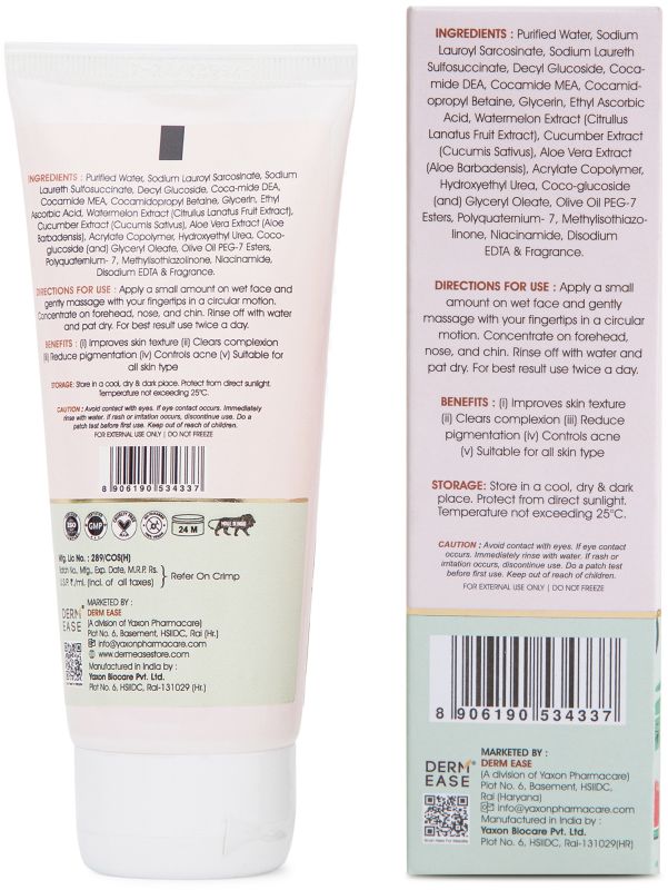 DERM EASE Papaya Face Wash is enriched with beta carotene which helps in strengthening skin\'s defense against UV rays. It is a rich source of antioxidants like lycopene. Clear blemishes & skin pigmentation. It hydrates skin, reduces skin inflammation & acne.