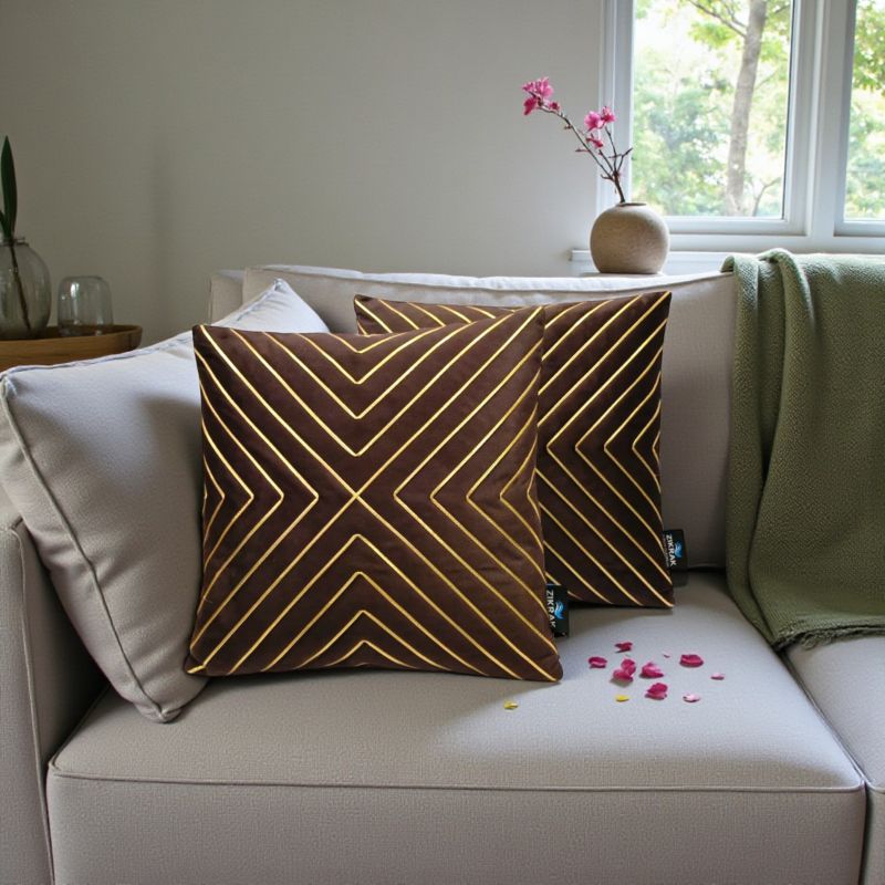 Zikrak – Vertical Brown Cushion Cover | 22×22 inch | Pack of 5 Enhance the beauty of your home décor with the Zikrak Vertical Brown Cushion Covers , designed in a spacious 22×22 inch size to give your sofa or bed a bold and stylish look. Made from high-quality fabric, these cushion covers offer a soft touch, durable finish, and a premium appearance that blends perfectly with modern and classic interiors. The elegant vertical stripe design in brown adds a warm, rich tone to your living space, making it ideal for living rooms, bedrooms, offices, lounges, and festive décor. Each cover comes with a smooth, concealed zipper for easy insertion and a neat, polished finish. This Pack of 5 large cushion covers is perfect for creating a coordinated and luxurious decorative setup with minimal effort.