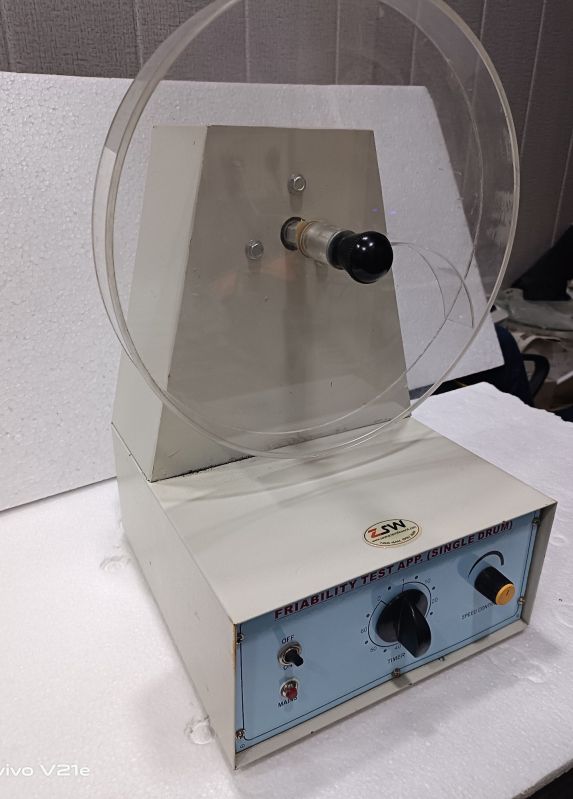 Friability Test Apparatus isa precision instrument for measuring obression strength of the tablets. The Friability Test Apparatus is designed as per IP/USP standards. The unit is equipped with two transparent acrylic drums which rotate at a speed of 25 .